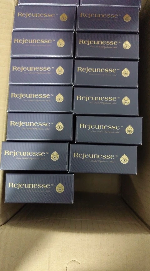 Rejeuness hyaluronic acid in order to more accurately and comfortably shaping each part of Asia, launched a total of four models were macromolecules, molecules, small molecules and water molecules. Product packaging The packaging box contains disposable glass syringe 1 and needle 2, the syringe contains 1ml of hyaluronic acid. Needle specifications are 27G 1/2 "and 30G? 1/2" and have been gamma-sterilized.